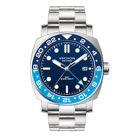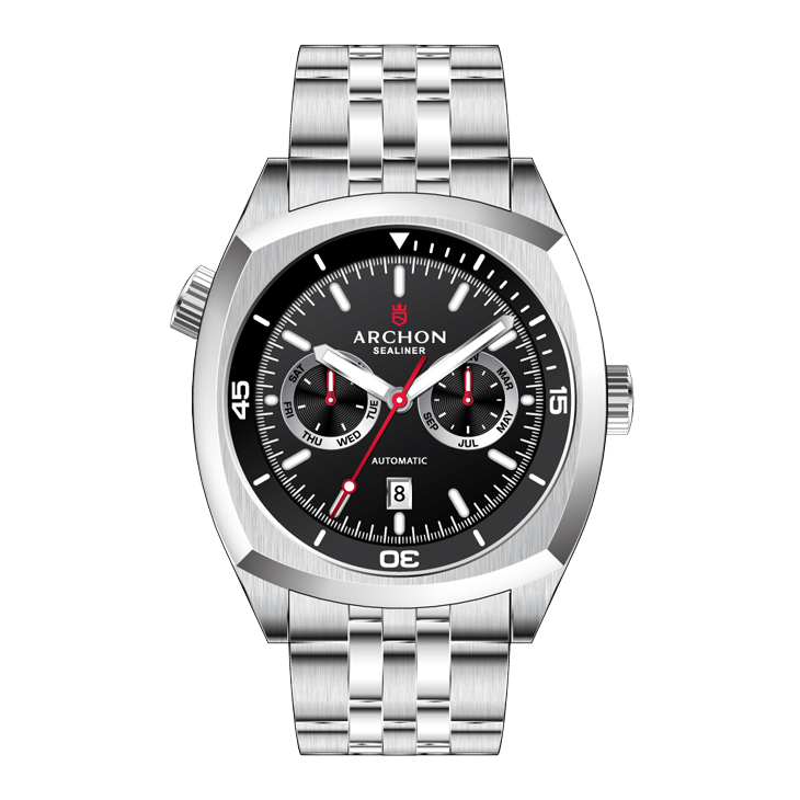 The unmistakable month/day complication of this watch sets it apart from the rest. The use of a sandwich dial allowed us to apply maximum Swiss Super-LumiNova for enhanced visibility in low-light conditions. An inner rotating bezel controlled by a crown at 10 o'clock safeguards this watch from accidental bezel movements. Placing the operating crowns at the 10 and 6 o’clock positions provides maximum comfort for casual and tactical wear. A screw down crown and thick sapphire glass provide this watch with up to 200 meters of water resistance, making it an imperative accessory for your dive.